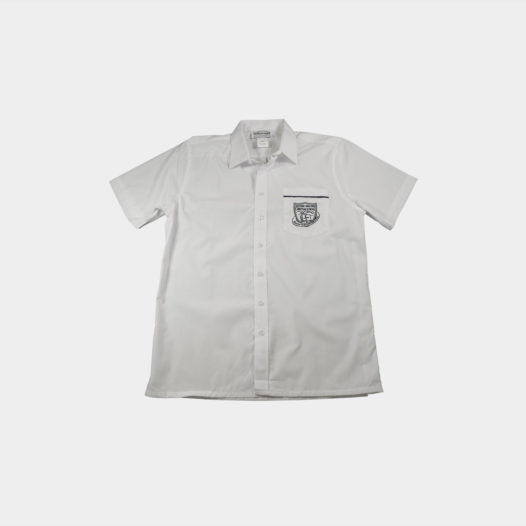 Mens White Short Sleeve Shirt with SHCS crest
